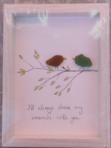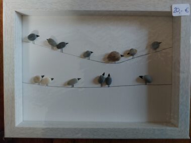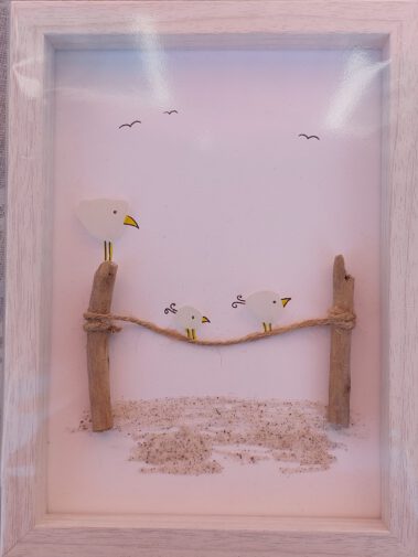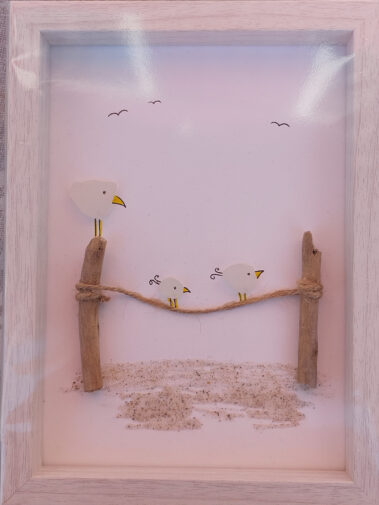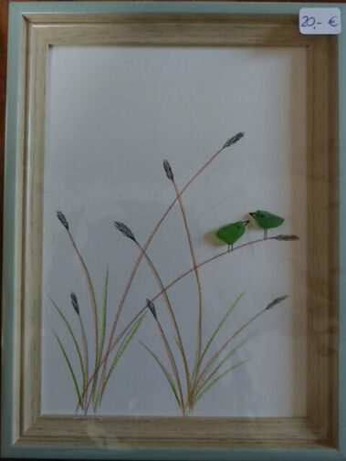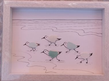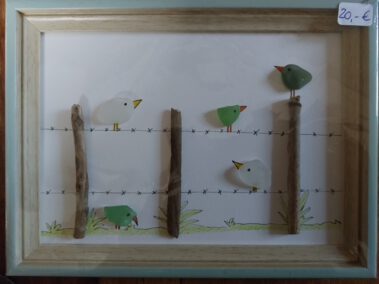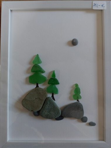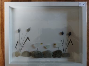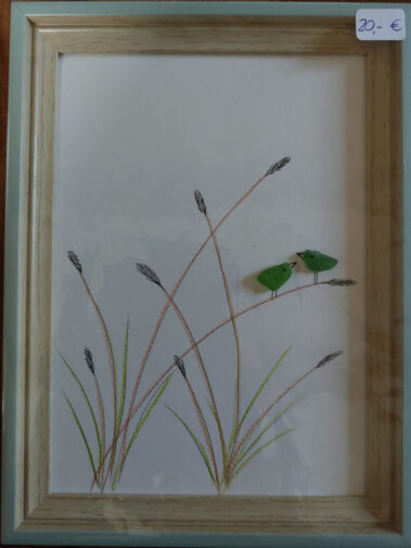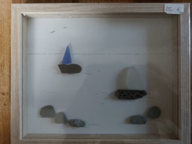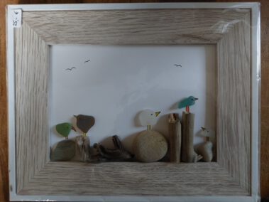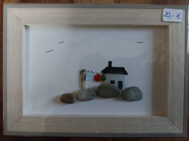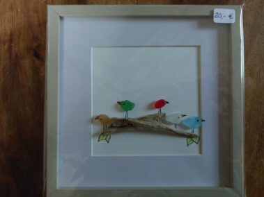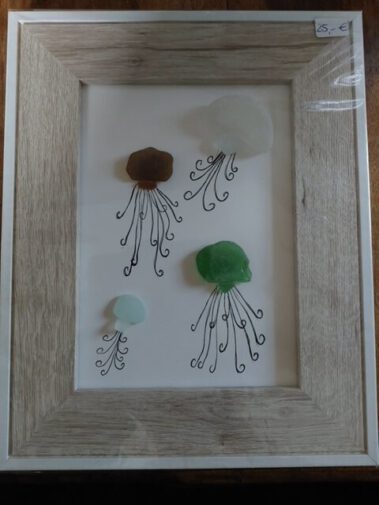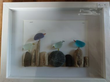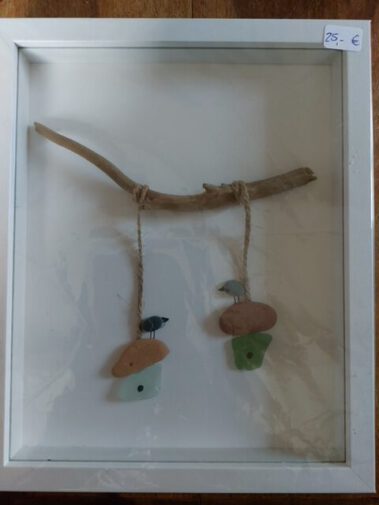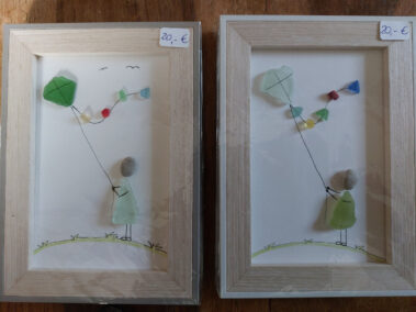 Neben individuellen Holzskulpturen biete ich seit kurzer Zeit auch Strandgut-Bilder an. Die Bilder werden in Handarbeit aus Treibholz und Seeglas gefertigt und sind in verschiedenen Motiven zu erwerben. Unten aufgeführte Fotos geben Ihnen einen Eindruck über die Seeglas-Bildchen.